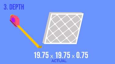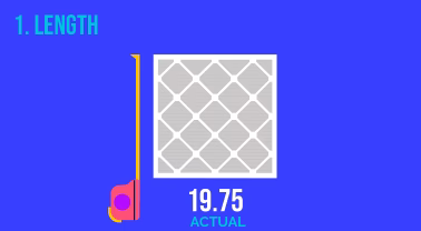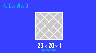 To determine your custom size AC filter size, measure the length and width (L x W). The smallest measurement goes first if your filter isn’t a square. Then measure the depth of your filter from front to back to determine its thickness. Then put your measurements together (L x W x D).