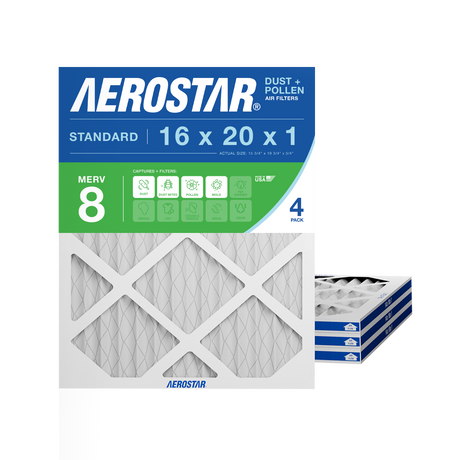 Built with durable, high-quality materials and made in the USA, Aerostar pleated filters are engineered for reliable performance and easy replacement. They’re designed to fit most major furnace and AC systems, helping maintain strong airflow while protecting your equipment from dust and debris.