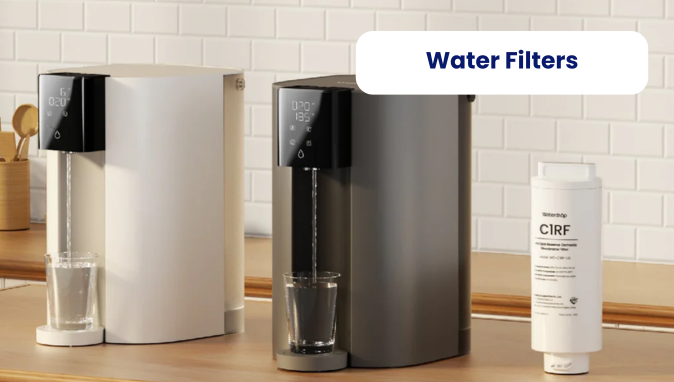 Water Filters: Drinking/cooking; pitcher, fridge, under-sink, or whole-house options.
