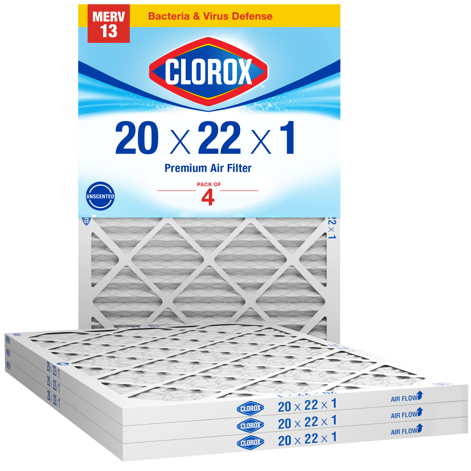 Clorox 20x22x1 Air Filter, Premium Pleated Furnace Filters